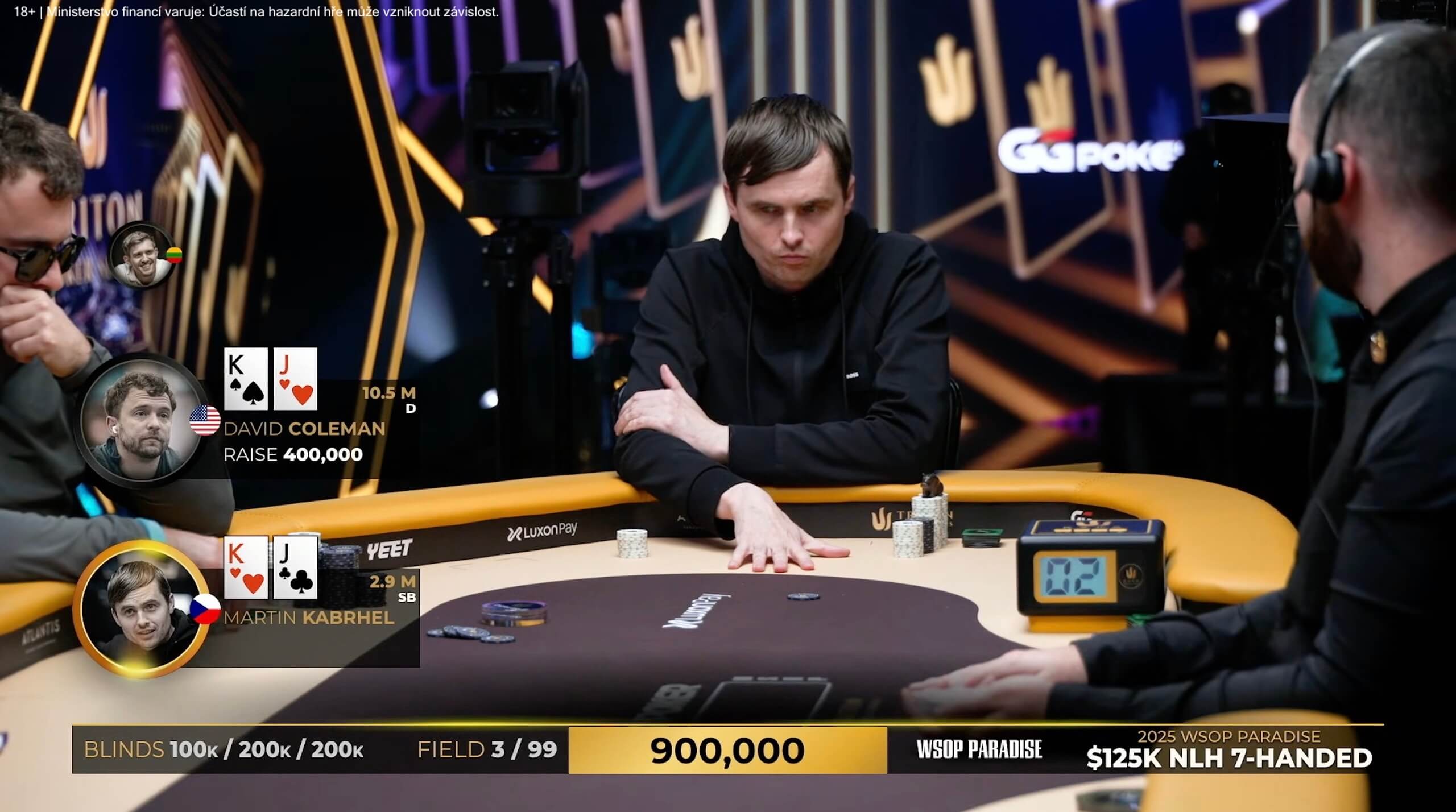 V závěrečné handě pak Kabrhel 3-bet shovenul ze small blindu K