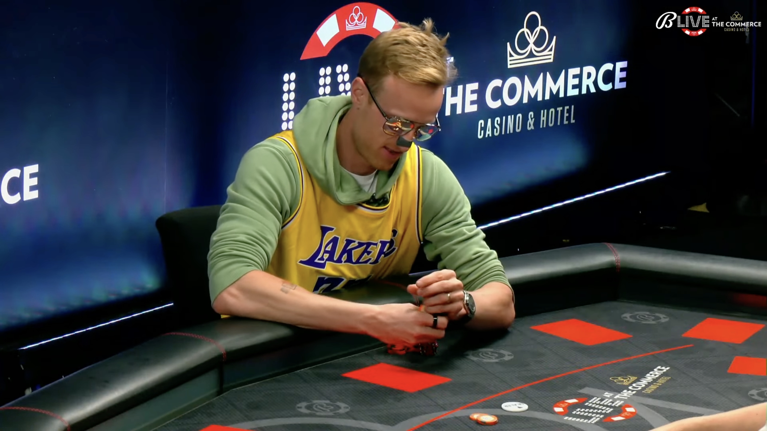Po 51 handách se náš borec, oděný stylově do dresu slavného basketbalového klubu LA Lakers, vyhoupl na chiplead. A nepolevoval. Vedení navýšil i mistrovským riverovým blafem proti blafu.