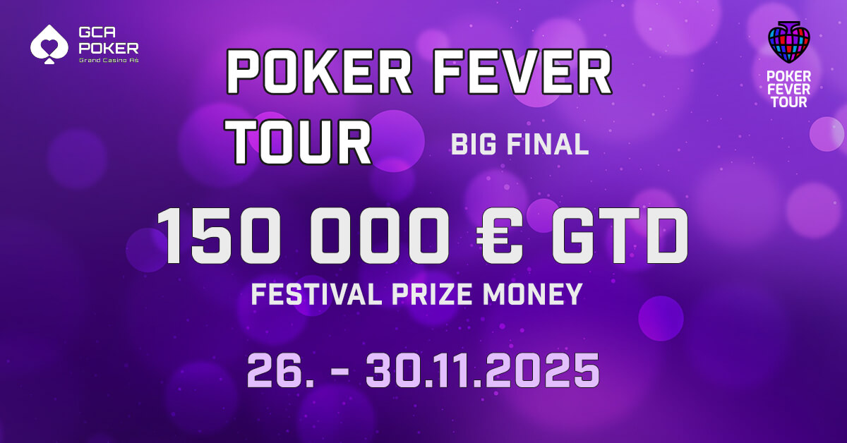 Poker Fever Tour: Big Final nabídne během 5 dní 7 pokerových eventů, včetně vícedenního Main Eventu s garancí €80.000. Do hry se dostanete díky kvalifikačním satelitům už za €40. Podívejte se na program turnajů.
