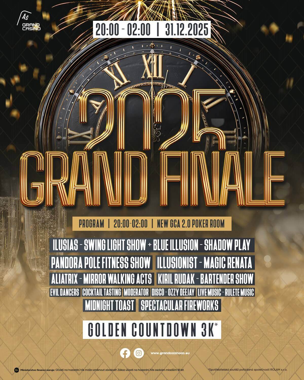 Poslední večer v letošním roce se v Grand Casinu bude konat velká silvestrovská show. Ve speciálně upraveném GCA 2.0 POKER ROOMu se bude konat mnoho zábavných akcí.