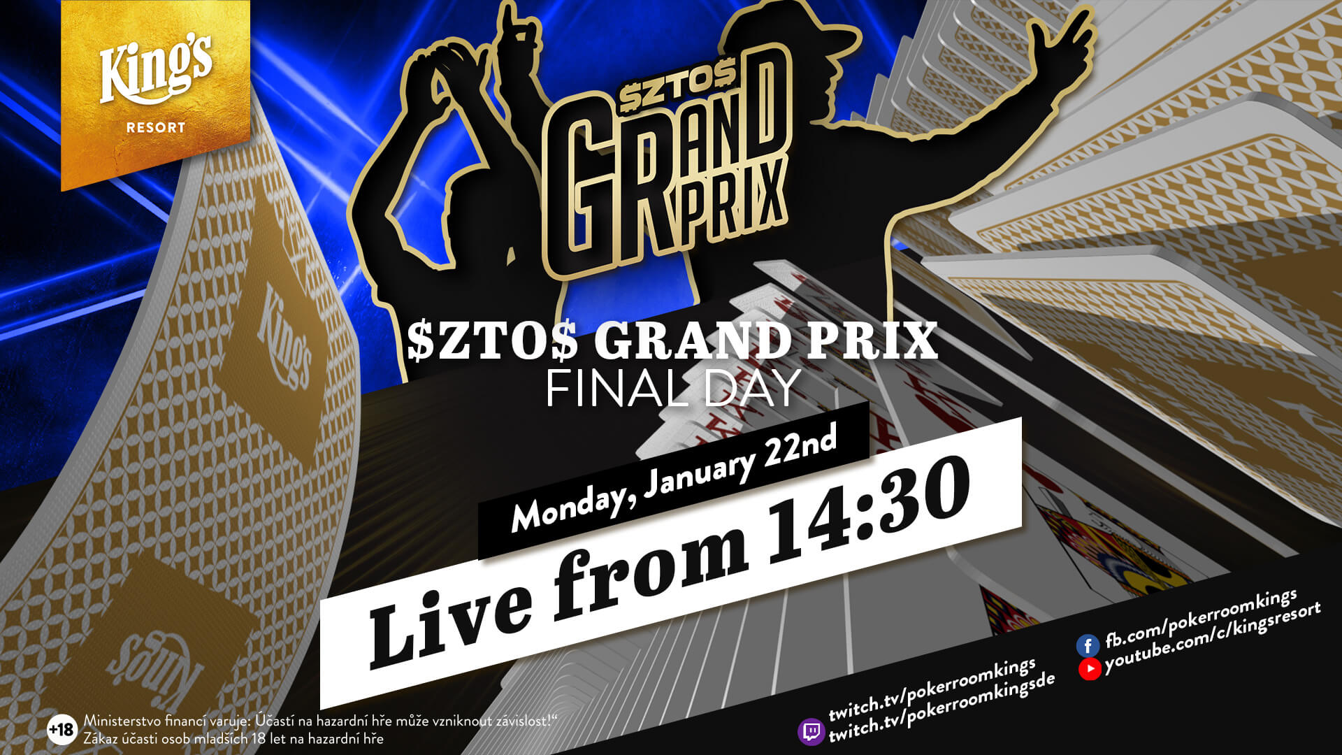 Ve finálovém dni $ZTO$ Grand Prix máme hned tři české zástupce – Michaela Adama, Radka Honla a Michala Mrakeše. Ti si dnes před kamerami casina King’s zahrají o část z garantovaného prizepoolu €500.000.