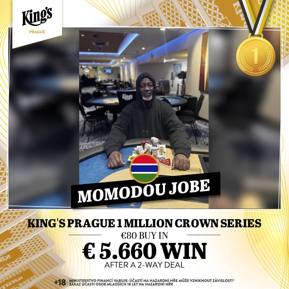 Momodou Jobe, hráč původem z Gambie s rezidencí ve Švédsku, aktuálně úspěšně navštěvuje King’s Casina v Praze i Rozvadově. Včerejší první turnajové vítězství mu přineslo již 24. zápis na Hendon Mobu a odměnu €5.660, v přepočtu přes 135.000 Kč.